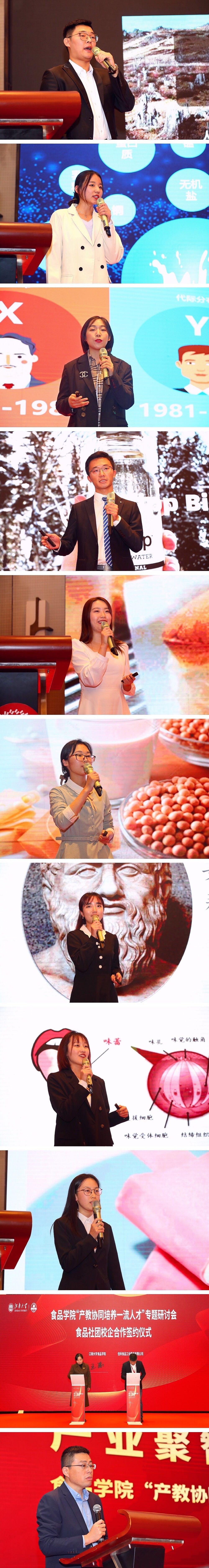 论坛上,嘉吉北亚区招聘总监陈梦渔女士发表了嘉吉的全球包容性与多元化如何植根校企合作的主题发言。光明乳业研究院刘振民院长以“聚力聚智,引领产业的创新发展”为题,阐述对产教融合共育一流人才的理解。天博食品配料有限公司市场部经理程林以“校企合作创新模式分享”为题,介绍了公司多年来致力于开展科创竞赛的经验与成果。杭州普罗星淀粉有限公司产品开发经理张甲奇从专业与产业对接的角度出发,介绍了产教协同如何助力企业发展。