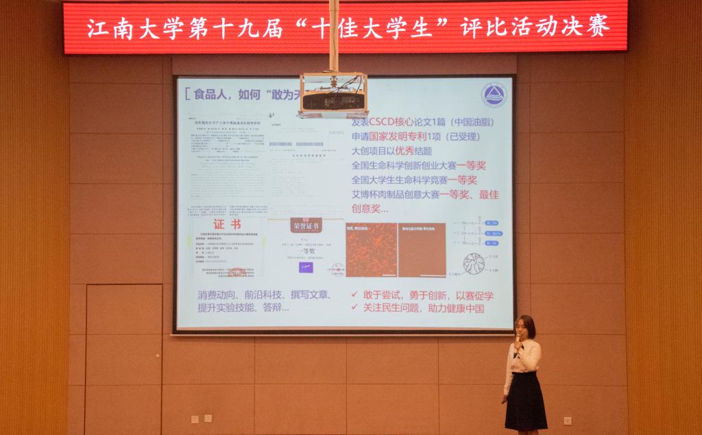 优秀共青团员等荣誉称号。在科创方面,曾获全国大学生生命科学竞赛国赛二等奖、第五届全国大学生生命科学创新创业大赛一等奖、艾博杯肉制品创意大赛一等奖最佳创意奖。参与发表1篇CSCD核心论文,1项国家发明专利。