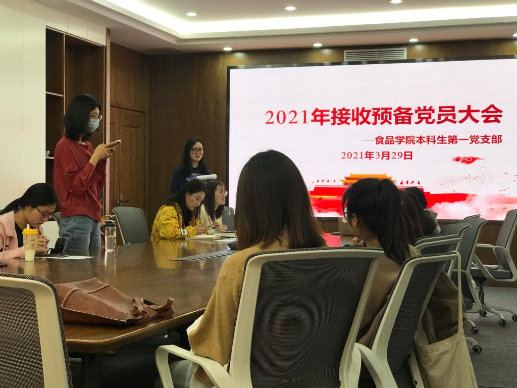 本科生第一党支部在食品楼D925举行了发展对象转预备党员的党支部大会。会议由周雯钰同志主持,支部全体师生党员参加。