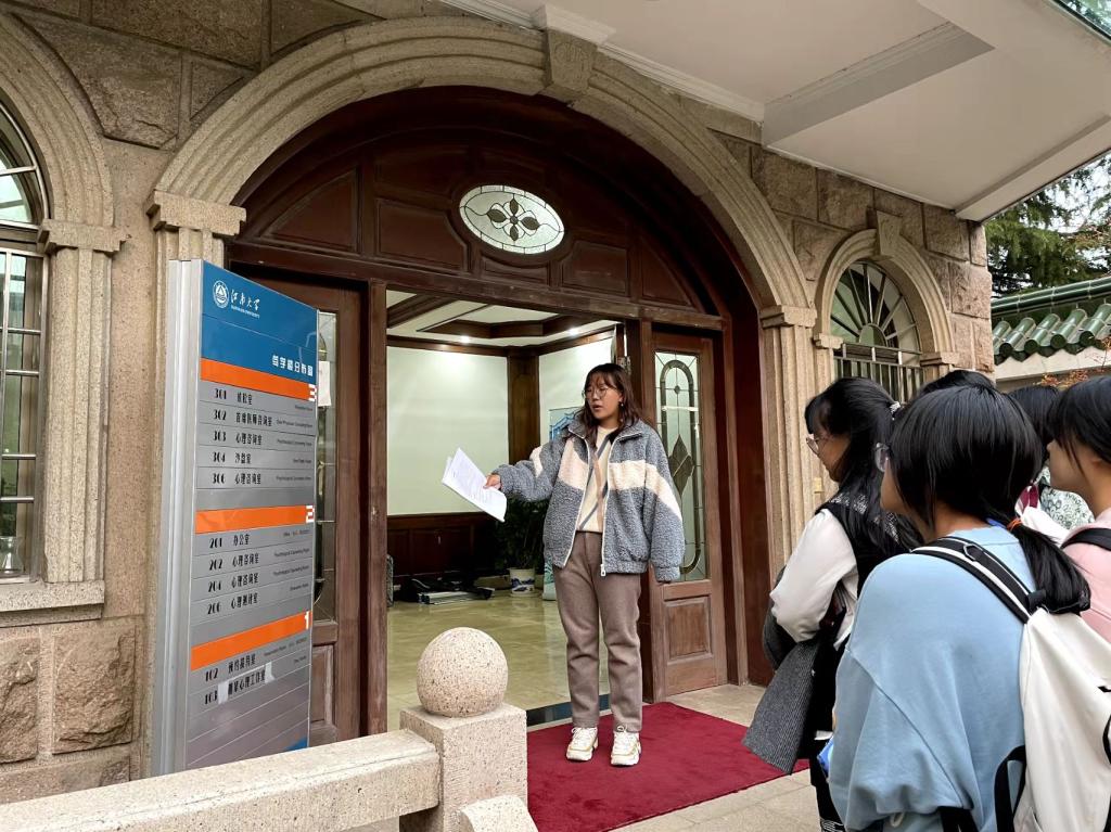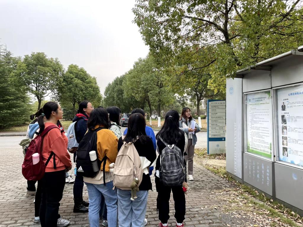 心理健康教育中心的心理咨询师团队,希望新同学们在遇到心理困惑时,能够及时有效求助。随后,志愿者带领同学们走进笃学楼内部,参观了预约接待室、书籍陈列室、心理咨询室等场所。