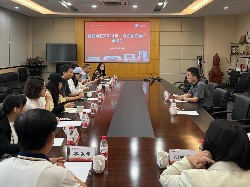 的院企协同育人模式发展历史、运行机制、核心理念、主要成果,并衷心感谢各家企业尤其是董事单位在学生实习就业、社会奖助学金设置、校园创新竞赛联合举办等方面提供的优质资源和鼎力支持。各家企业分别介绍各自发展情况,并对我校食品学科的实力特色和目标愿景予以充分肯定,表示愿意和学院一起打造全方面、立体化、谋长远的创新合作模式。与会人员就院企双方共同关心的人才招聘、产教融合等话题予以讨论交流,现场气氛十分热烈。