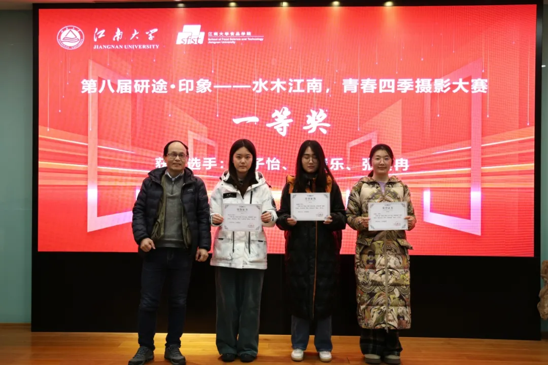 本届摄影大赛以“清溪绕梦,江南水韵”“树影婆娑,岁月凝香”“青春逐梦,校园拾光”三个主题赛道面向全校广泛征稿,共收到954份优秀作品。经线上投票和专业评审,最终评选出21项获奖作品。颁奖仪式上,各位老师为获奖同学颁发荣誉证书并合影留念。
