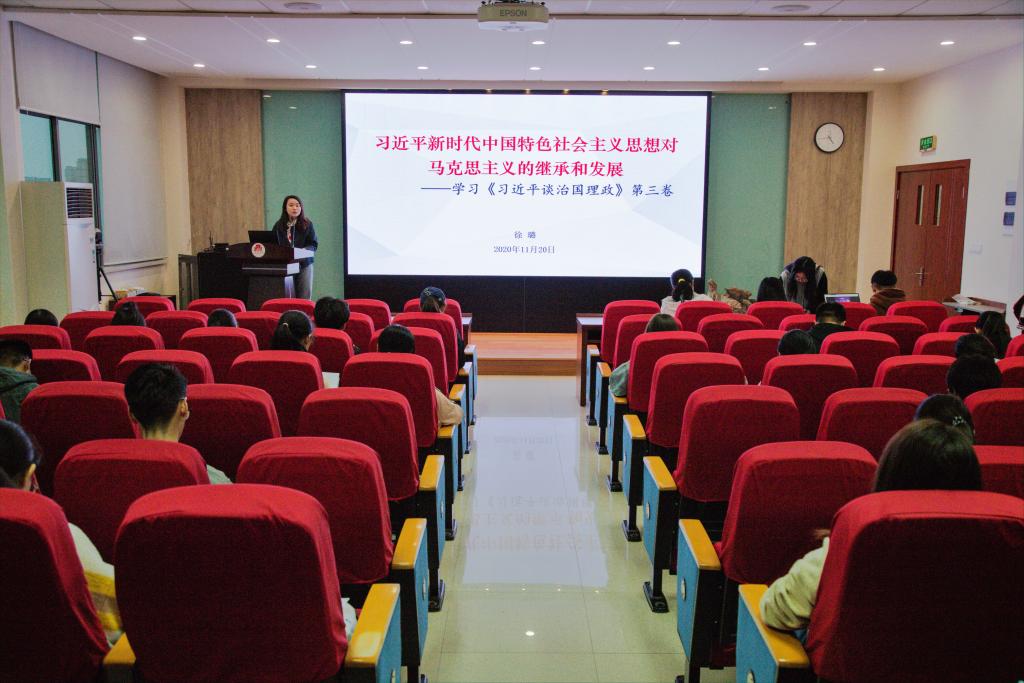 第十二届“青马”训练营理论学习第二讲在食品楼D912举行,徐璐老师以“习近平新时代中国特色社会主义思想对马克思主义思想的继承和发展”为主题带领“青马”营员进一步了解习近平新时代中国特色社会主义思想及马克思思想理论。