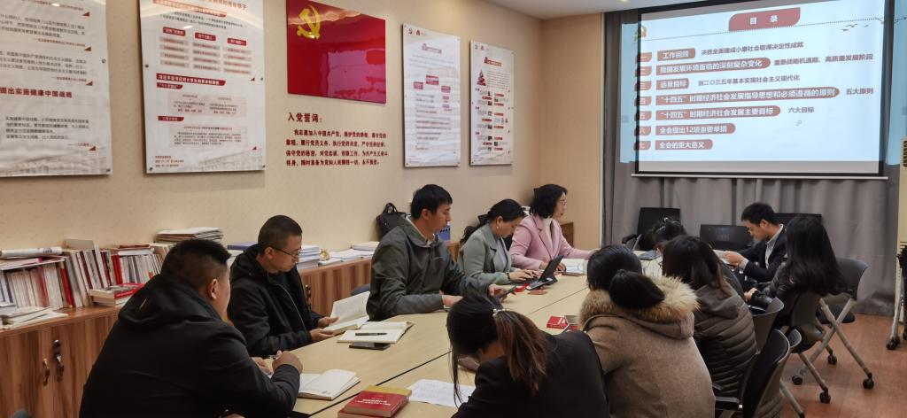 傅莉莉书记首先带领大家学习了党的十九届五中全会召开的时代背景、会议概况和重大意义,重点解读了“高质量发展”“新发展格局”“科技自立自强”“文化强国”等关键词。傅书记说,学习好、宣传好、贯彻好党的十九届五中全会精神是当前学院党委的首要政治任务,各个党支部要在深入学习、全面领会上下功夫,要在指导实践、推动工作上下功夫,结合学院立德树人中心工作,做好“十四五”规划,把学习成果转化为全力实现一流学科高质量发展的新举措、新动力。