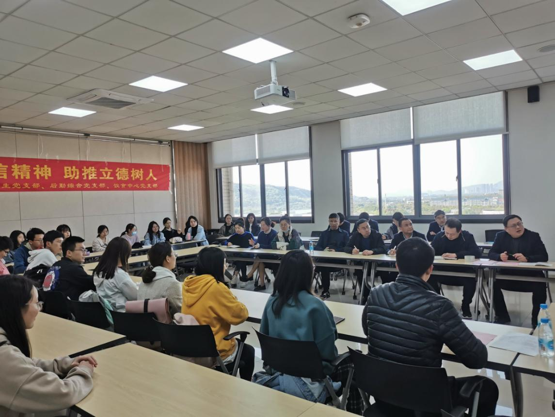 的优秀毕业生万芊(曾在联合国粮农组织任职)和鲁晨辉(远赴云南支教),希望学生党员在高质完成学业的同时,更要着眼国家需要,做好榜样示范引领。后勤育人工作主要介绍了后勤育人初心和育人模式,详细阐述了后勤学校的发展历程以及育人实践平台建设,让学生党员深入了解了后勤工作。
