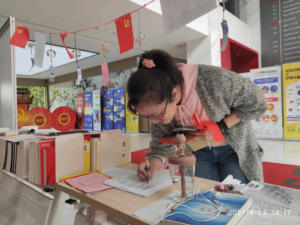 在食品楼一楼大厅举办“阅读红色经典,百年薪火相传”晒书活动,活动由色情网站