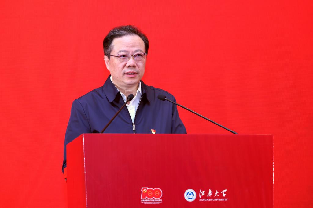 张大良代表中国高等教育学会对论坛的举办和联盟的成立表示祝贺,他指出,坚持党建引领,为党育人、为国育才是高等教育工作者的初心和使命。他提出三点建议,一是准确把握高校党建育人的时代内涵,积极思考高校党建与育人的逻辑联系,明晰党建为育人指明方向、提供保证、彰显优势。二是积极探索高校党建育人的有效路径,要把党建育人纳入人才培养、教学管理、学科建设、学术研究、科技创新、社会服务等方面,实现高校党建工作与高等教育事业的深度融合。三是有效推动食品学科党建育人工作创新,以党建工作促进“学科发展”、以“集体认同”协调“集体行动”、以创新机制激活“内生动力”。他希望党建联盟成员们牢牢把握党建育人核心要义,为食品学科发展和人才培养贡献力量。