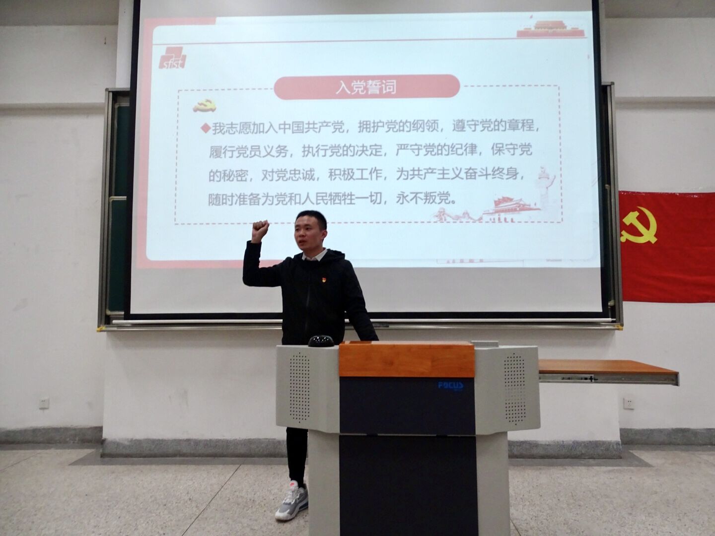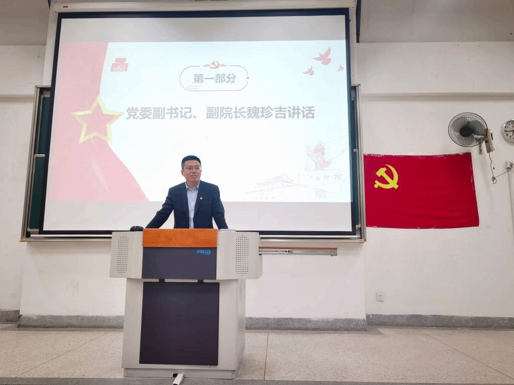 魏珍吉做讲话。他表示,学院高度重视党员质量的培养,今年新生党员人数达236名,规模近新生总量一半。他要求各党支部开展工作要坚持理论联系实际,在实践中检验理论的正确性,不断提升团队的思想政治素质。他希望党员同志发挥好先锋模范作用,始终秉承敢为天下先的创新精神,实现科研成果的突破,为推进一流学科建设贡献青春力量。
