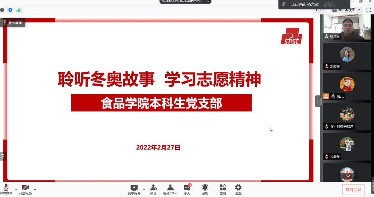 本科生党支部开展“聆听冬奥故事,学习志愿精神”党课活动。活动由辅导员杨光宝主持,冬奥会志愿者杜佳欣同志应邀进行志愿经历分享。