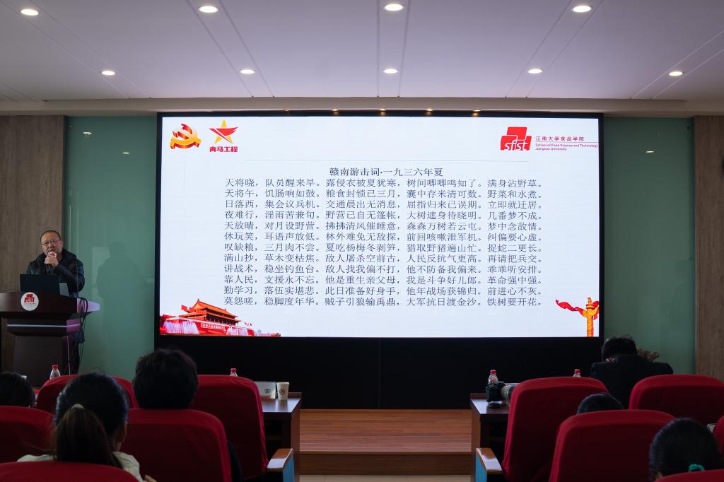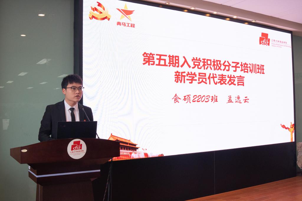 党委深切关心青年成长,高度关注青年发展。他从支教报国、竞赛赋能、扎根基层等方面列举了食品学子中的典型青年,以新时代食品青年砥砺奋进、敢为人先的精神风貌和心有大我、立志报国的人生选择激励同学们厚植爱国情怀、坚定理想信念、加强专业学习、提升综合素质。他鼓励学员们在大学时代努力提升个人的社会化能力,自觉融入党和人民团结奋斗的历史洪流,争当伟大理想的追梦人、争做伟大事业的生力军。