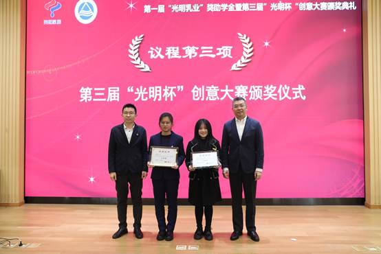 迄今为止已有28名同学获得“光明乳业”奖助学金,30个科创团队获得“光明杯”创意大赛奖励,奖励资助总金额达22.2万元。校企双方嘉宾共同为获奖同学颁发证书。