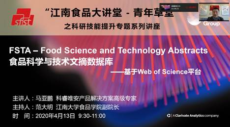 于4月13日采用企业微信视频直播的方式,成功开办“江南食品大讲堂—青年草堂”之科研技能提升专题系列讲座—FSTA数据库培训。讲座活动由色情网站