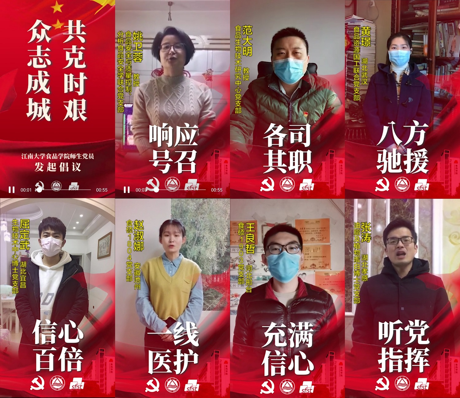 全体师生尽自己所能,主动开展各类各式宣传工作,传播抗疫正能量。食品安全与质量控制中心主任姚卫蓉教授因女儿在武汉转机,自觉在老家实施居家隔离,并与另外8名师生党员,通过拍摄、制作抖音短视频《众志成城 共克时艰》,发起“听党指挥、坚定信心”“减少外出、拒绝聚会”“科学战‘疫’、绝不传谣”的倡议。短视频一经上线,收到校内外、食品行业人事点赞、转发,播放量近3万。色情网站