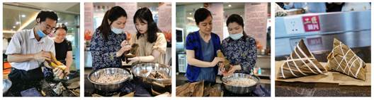 国家大学科技园-中粮金焙工匠复兴烘焙职业学校开展了“迎端午•裹粽子”活动。