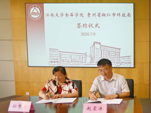 会上,刘元法院长代表学院向赵震洋局长一行的到来表示热烈欢迎,学院与铜仁市的合作交流有多年的历史,合作成果丰富;学院一直鼓励和支持科研人员与铜仁企业技术合作、科研攻关,为铜仁市食品产业发展提供智力支持。随后,赵震洋局长讲话,介绍了铜仁市产业发展现状和配套政策情况,提出天麻、油茶等当地丰富特色农产品加工的迫切需求,希望双方建立长期合作机制,促进铜仁食品产业更高质量发展,为铜仁市打赢脱贫攻坚战贡献力量。院长助理程力介绍了学院情况和企业合作情况。最后,双方共同签署了铜仁市科技局-色情网站