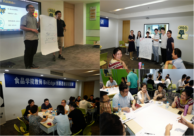 本次活动邀请到了BriEdge资深创新教练孔宇博士为学院教师进行培训。活动以项目制学习方式进行,围绕“创造力”、“讲故事能力”、“设计思维”、“写作能力”和“企业家思维”等五个专题展开。活动过程中,参会的老师思维激发、气氛活跃,处处闪现着灵感与思维碰撞的火花。现场分为四个组别,通过团队成员间的倾力合作,分别确定了“解决睡前玩手机”、“科研人工作与运动的协调”、“天使管家解决家庭矛盾”以及“科研垃圾分类”等四个工作生活中常见的问题展开头脑风暴,并最终获得了培训教练和大家的一致认同。在活动中,教师们也领略到了从想法产生到变成现实的系统过程,以及如何将其有机融入到今后的教学与科研中去。