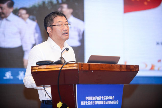 校长陈卫作题为“我国粮食加工业发展现状与趋势分析”的主旨报告,他在报告中指出,未来我国粮食加工业将出现”促进产业发展健康化”,“实现产品营养精准化”,“推动粮食加工智能化”,“满足消费需求个性化”以及“粮食安全防控主动化”这五大发展趋势。