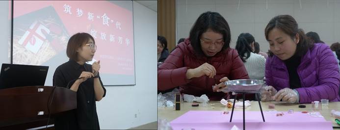 分工会特地邀请口红制作工作室的老师前来教学。活动伊始,老师首先进行了知识分享,鼓励大家要用最好的妆容细心装扮自己;分享结束后,老师按照材料混合-倒入模具-安装完成-制作包装的步骤进行教学,随后参加活动的老师们开始按照步骤制作属于自己的口红。