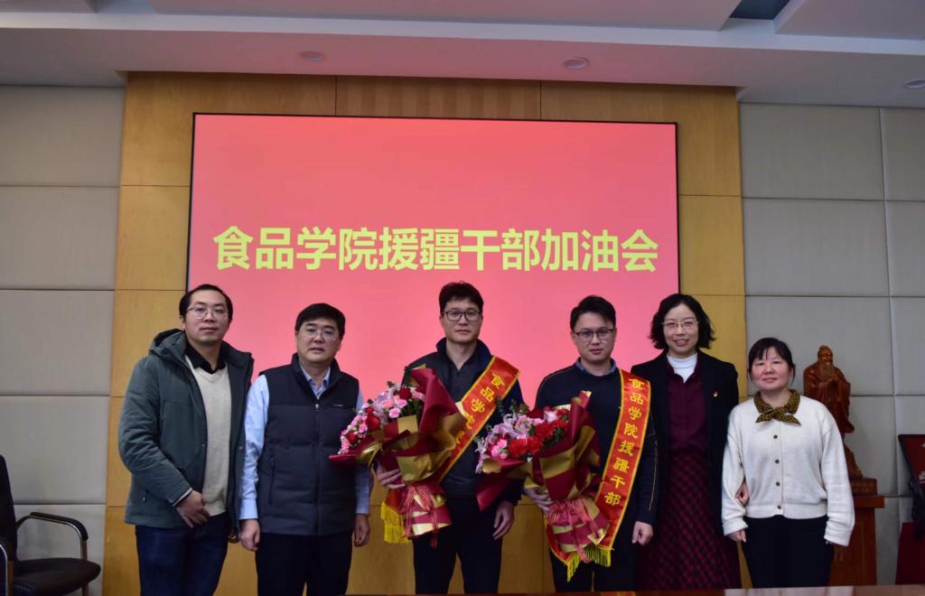 将全力支持,做好后援工作,并希望两位援疆干部将“江南食品人,敢为天下先”的精神和“大院小家”的文化带到新的工作岗位中去,以苦砺志,建功成长,高质量完成此次援派任务,为学校和学院争光添彩。