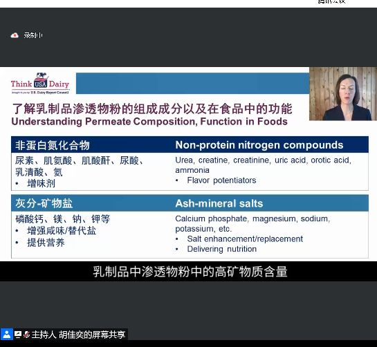 在大赛主题乳蛋白的专业知识讲解环节,美国乳品出口协会顾问Donna Berry讲述了“乳蛋白的力量,推动潮流创新”;协会全球原料技术营销服务副总裁Annie Bievenue讲述了“美国乳制品渗透物份的益处、多功能性及应用机遇”,使参赛者更加了解乳品渗透物粉的市场需求和成品添加现状。