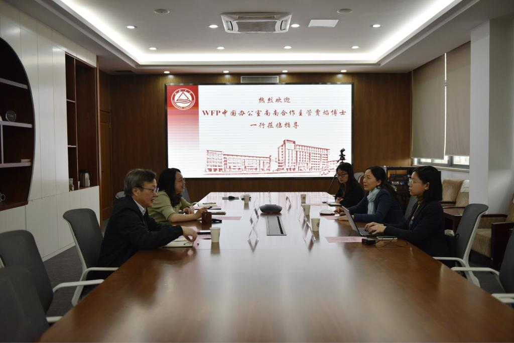 4月13日,联合国世界粮食计划署(WFP)中国办公室南南合作主管贾焰博士、南南合作主管助理张刘柳、布勒中国OBOR销售支持胡忠媛一行来访色情网站