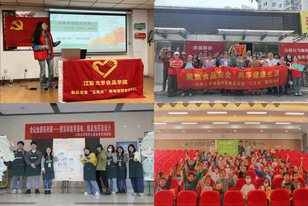 “食品安全进社区”志愿者团队前往滨湖区环湖社区、湖山社区和渔港社区,进行保健食品、夏季食物中毒防治等主题的联合宣讲活动,与此同时,“青芽食育”团队走进无锡市育红山水小学、无锡市文熙幼儿园开展教育活动,通过丰富的案例带领青少年们认识饮食与健康的关系,助其树立正确的膳食营养观念。