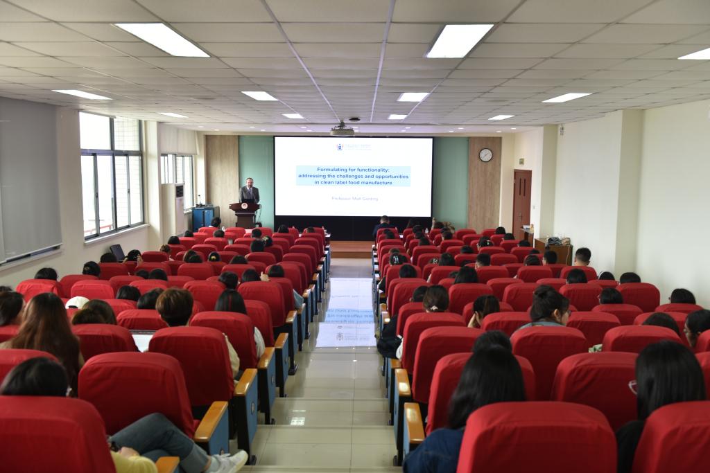 Matt Golding作题为“Formulating for functionality: addressing the challenges and opportunities in clean label food manufacture”的学术报告。他重点介绍了食品添加剂在当前盛行的“清洁饮食”配料表境况中的机遇和挑战,深入分析其发展历史与未来趋势。他与参会同学双向交流,现场气氛十分热烈。