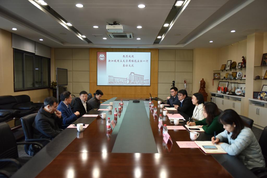 傅莉莉对周维彪一行来访表示热烈欢迎,并介绍我校食品学科建设及科学研究发展概况。周维彪介绍新加坡国立大学食品系概况,并分享相关发展成果与创新教学模式。双方还就食品科学领域的最新研究进展、人才培养和未来合作进行深入探讨交流,对彼此在学术研究等方面取得的成就给予充分肯定,希望未来通过互派学生、联合科研、共同举办学术研讨会和技术交流活动等形式进一步加强合作,一起推动食品科学领域的可持续发展。