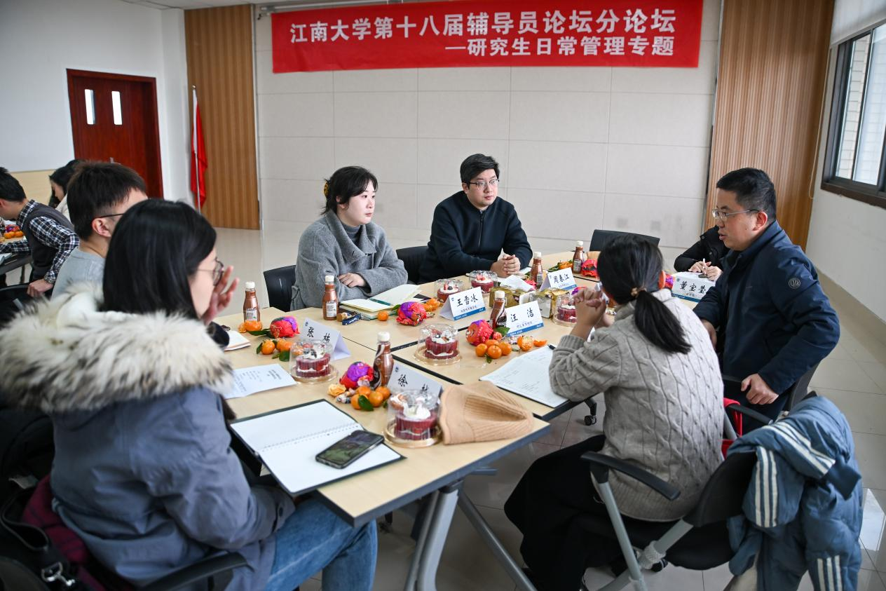 在破冰环节,大家通过“大风吹”“心有灵犀”“二十四点计算赛”等加速认知、互相熟悉,为接下来的小组研讨营造轻松的氛围。随后,与会人员围绕“导学与辅学关系构建”“研究生管理模式创新探索”“研究生生涯教育体系思考与实践”等三个主题分组讨论。设计学院学工办副主任冯永鹏、纺织科学与工程学院学工办副主任任学敏、医学院辅导员董宝莹分别代表三个小组进行汇报。