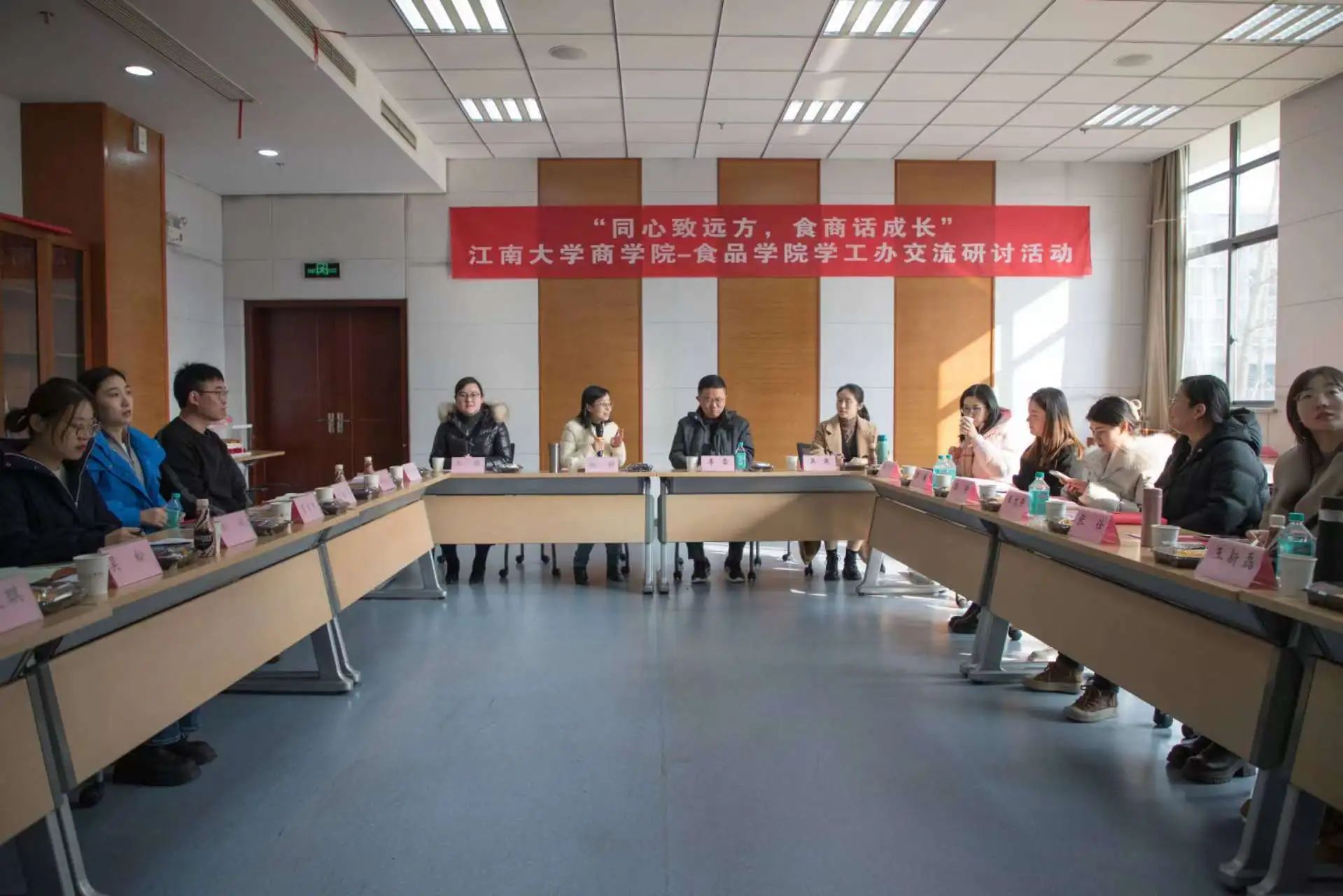 学工组赴商学院与对方学工组开展主题为“同心致远方,食商话成长”的联学共建活动。商学院党委副书记、副院长徐静,我院党委副书记、副院长李雷携双方全体辅导员参与活动。