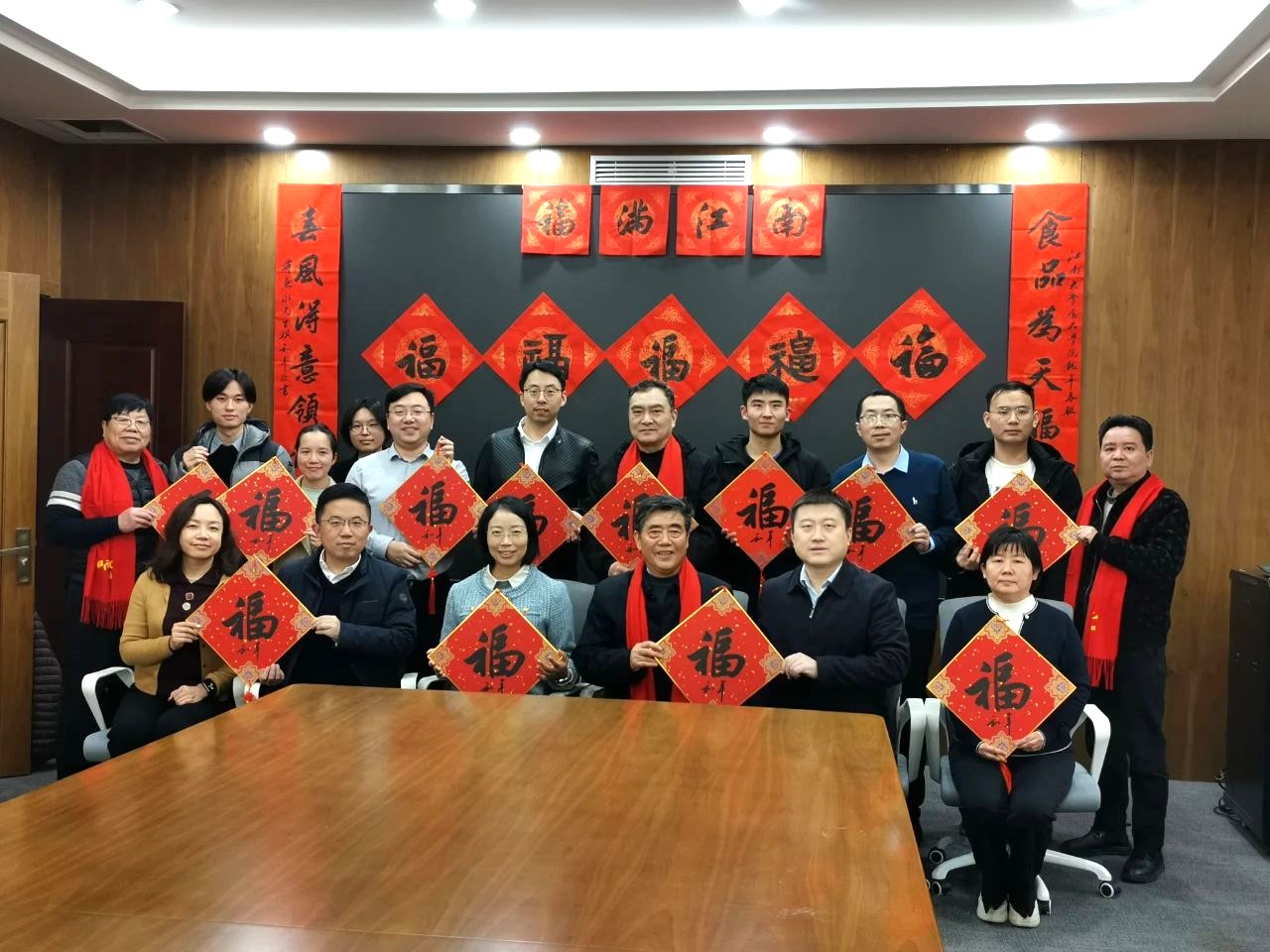 著名楹联家蒋东永为学院作联:“食品为天福众口,春风得意领龙头”,由冯和年书写后赠予学院。爱心大使李敏媛代表《江南文化》分别向我院首任院长姚惠源、第二任院长金征宇、第三任院长张灏、第四任院长陈卫、第五任院长刘元法等教师赠送《福卡》以表敬意。除与尤秀渊老师合作《双福》外,“五福登门”“生肖福聚”是这次送《福》活动的新亮点。期间,周国泉、唐洁凤、张燕萍、殷月亚、华赵暖、刘红等不辞辛劳,为参与互动的各位教师赠送福字。一个个洋溢着墨香的“福”字,不仅充盈着新春的气息,更传递着温暖人心的祝福。