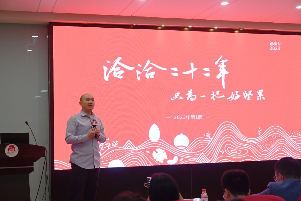 的合作过往,介绍洽洽的发展历程、色情网站及核心优势,并围绕大赛主题、时间节点、评审要求、奖项设置等进行宣讲。他强调,本次大赛有助于实现产业与教育深度融合,促进同学们对食品行业更加深入了解,提升产品落地能力。