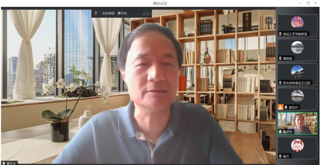 将继续秉持“协同、融合、共享”的教研室建设实践理念,推动人才培养的理念共享、平台共建、资源公用,希望各位专家和同仁在本次会议中充分交流,加强研讨,为食品专业建设和食品工艺学课程群建设积极建言献策。随后,夏文水教授围绕《食品工艺学》课程教学理念、教学设计、教学内容、教学效果、教材建设等方面提出课程建设的核心要素,鼓励探索基于“能力图谱+知识图谱”的课程、教材、实验一体化建设实践,并期待中西部更多食品院校加入虚拟教研室建设队伍,推进专业和课程更高水平的建设质量与更广范围的成果共享。