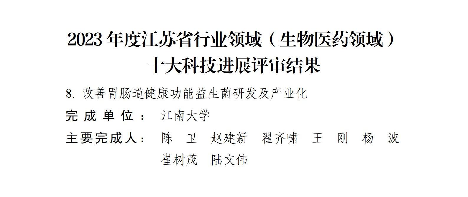 教授赵建新、翟齐啸、王刚、杨波、崔树茂、陆文伟等参与的“改善胃肠道健康功能益生菌研发及产业化”项目成功入选。