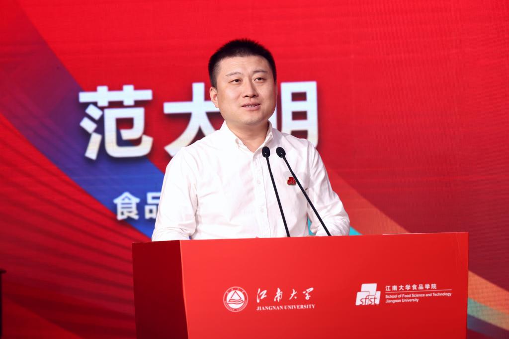 院长范大明在致辞中表达了三个“感谢”和一份“期许”。他感谢诸多爱心企业慷慨解囊、捐资助学,强调学院的发展进步离不开行业企业的一路相持;他感谢从大洋彼岸远道而来的校友代表,称赞他们是学院最宝贵的财富;他感谢学校相关职能部门给予的指导和帮助,为学科和学院提供了坚强后盾。范大明期许本届“食代学子”,以荣誉为起点,不骄不躁、脚踏实地,引领全体青年突破舒适区,服务国家重大需求、产业关键技术、食品学科发展,为人类健康和美好生活奉献青春力量。