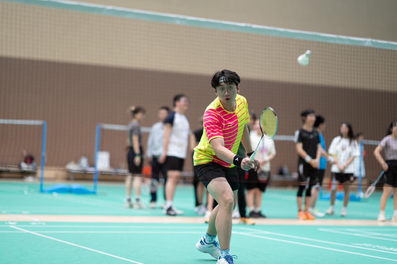 团体赛不仅是力量与技巧的考验,更是统筹与战术的较量。开赛之前,队员们积极讨论战术,为赢得积分而努力。比赛伊始,选手们迅速进入状态,师生配合、张弛有度,时而跳跃扣杀,时而轻盈吊球,矫健的身姿勾勒出一幅幅充满力量的画面。场内你来我往,高潮迭起;场外加油喝彩,呐喊助威!