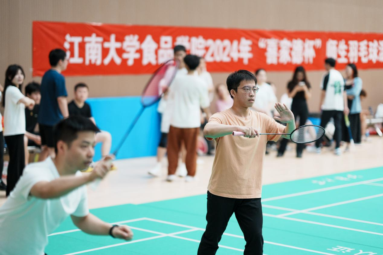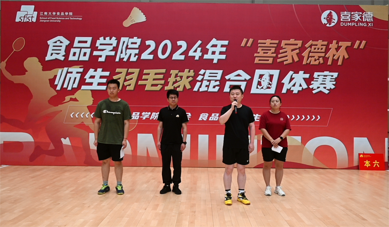 范大明首先致开幕辞。他强调,食品学子不仅要学习好、科研好,更要身体好、精神好,积极响应全民健身号召。他指出,本次赛事继续沿用师生同窗报名通道,划分研究生、本科生双赛区,促进师生之间、研本之间的体育协作和运动交流,希望大家秉承“友谊第一,比赛第二”的原则,舞动球拍,“羽”出精彩,为各自纵队贡献力量!