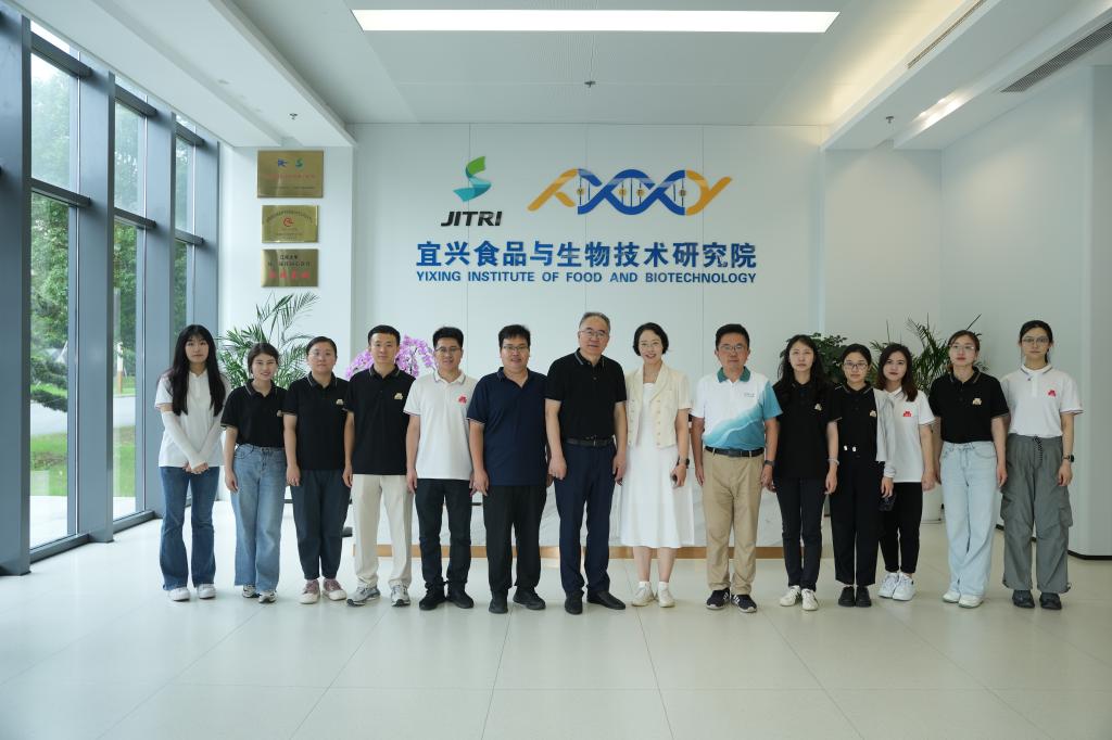 在活动首站——宜兴食品与生物技术研究院,院长张光生向我院访问团介绍研究院在人才队伍建设、科研成果产出及产学研合作等方面取得的丰硕成果,并带领参观入驻团队实验室、公共实验平台及中试实验平台等,深入了解研究院运行情况。傅莉莉表示,研究院汇聚优秀人才,科研实力卓越,希望双方单位充分发挥各自优势,深入推进彼此合作。