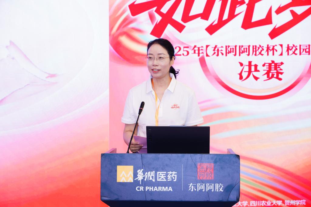 与东阿阿胶的合作是党团共建、协同育人、科学研究、产品开发、文化交流等多个维度的具象联结,充分彰显了校企合作的广度、深度与力度。此次竞赛汇聚一企六校,不仅是一场学术与技艺的比拼,更是贯通古今的文明对话。她希望东阿阿胶三千年淬炼的“匠心里程碑”与当代青年锐意创新的“思维冲击波”彼此交汇,演绎“守正出新”的壮丽篇章。