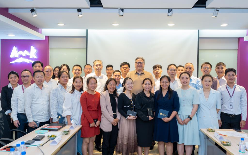 -AMK战略合作研讨会”。上海商业银行董事长荣康信、AMK首席执行官 Kea Borann、柬埔寨皇家农学院副校长Huon Thavrak等接待我校访问团。