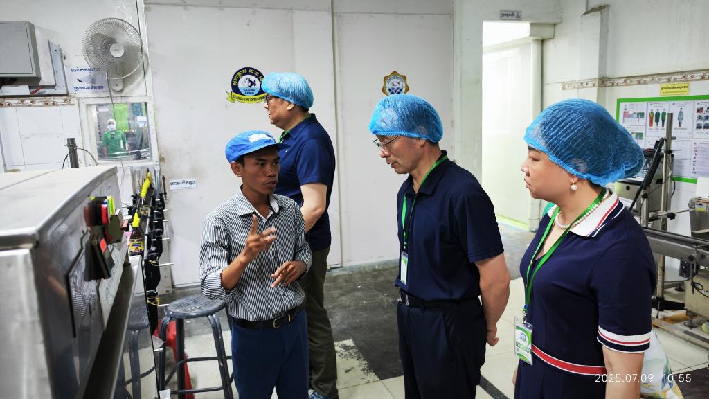 出访期间,我校访问团还实地考察Ny Eang Neng(鱼露加工企业)、Cambodia Fresh Farm(冷冻鱼制品加工企业)、Leang Leng Enterprise(调味品加工企业)、Golden Yem(营养米粉加工企业)等,参观企业加工生产线,详细了解企业原料供应、产品品系、产销情况等基本信息,并与企业负责人、研发人员交流现有工艺方案与加工产线所存在的局限性及对产品生产效率、安全性的潜在风险,并针对新产品研制、生产工艺优化、自动化装备更替、生产安全意识培训等方面提供可行性建议与定向指导。