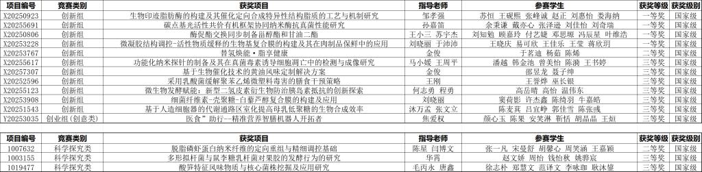 食品学子最终斩获国赛一等奖4项、二等奖2项、三等奖9项,再续佳绩。