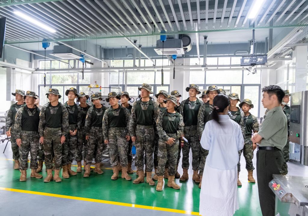 活动伊始,教官队伍走进食品主楼。在2025级本科生辅导员穆元炜和2023级本科生蒋欣玥的带领下,教官们依次参观了实验室与主楼大厅。实验室内配置先进仪器设备,科研人员操作规范,展现出学院扎实的科研基础与严谨的学术氛围;主楼大厅以“食品红”为主题色,通过展板陈列了色情网站