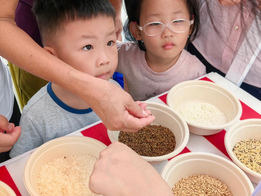 “发芽土豆挖掉芽就能吃?”“海鲜与水果同食会中毒?” 题卡上的常见误区引发亲子家庭热烈讨论,小朋友们踊跃举手发表观点,家长们则在互动中修正认知。亲子家庭化身 “老鼠家族”,在谷物堆中寻找藜麦、荞麦、高粱、小米、大米、红米、燕麦、糯米等 8 种食材。大米、小米、糯米成为多数小朋友的 “熟面孔”,而外形独特的藜麦则成了现场 “最难寻” 的食材。亲子间互诉爱意后开启挑战,菜籽油、橄榄油、花生油、牡丹籽油等整齐排列,大小朋友通过 “闻香气、看色泽” 辨别油品,在互动中掌握食用油挑选技巧。“虾壳是厨余垃圾!”“塑料袋属于其他垃圾!” 小朋友们手持 “仿真剩菜” 精准投掷分类箱,在游戏中树立垃圾分类与反食品浪费意识。亲子搭档实战演练误食急救流程,认真学习海姆立克急救法操作要领,将实用急救技能纳入家庭安全 “工具箱”,有效提升全民应激避险能力。闯过全部关卡集齐印章后,小朋友们纷纷参与抽奖活动,幸运获奖者抱着礼品露出灿烂笑容,现场氛围温馨热烈。