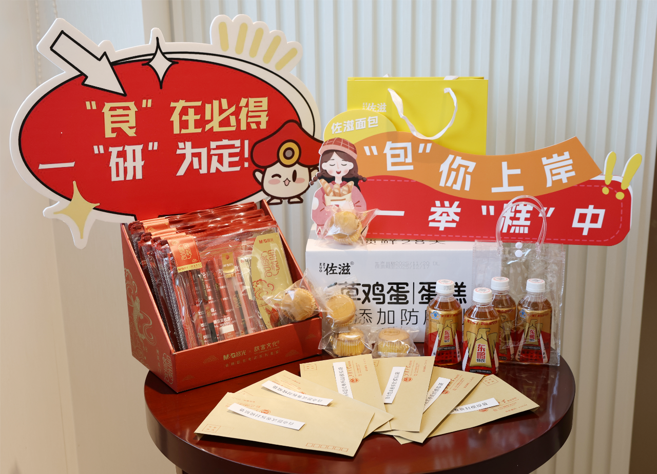 本次慰问的考研加油包,是学院联合佐滋面包、东鹏特饮精心定制的“能量密码”——一箱软糯香甜的鸡蛋糕和一瓶提神醒脑的饮料,为考研学子们补充冲刺动力。此外,学院还贴心准备了自命题试卷拆封模拟袋、考研涂卡套装(涂卡专用笔、涂卡铅芯、考试橡皮等),细致考虑备考需求,让学子们可以安心冲刺。