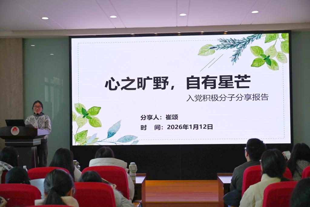硕士党支部张希娟作“以青春之名,赴时代之约”党课第二讲。她结合自身成长经历,围绕志愿服务、创新竞赛与实习就业三个方面作交流分享。她以长期参与“青芽食育”志愿服务为切入点,阐述了在服务社会中坚定理想信念的过程;通过创新竞赛与科研实践,分享了党员在攻坚克难和团队协作中的责任担当;并结合实习与求职经历,强调党员先进性应体现在专业能力与踏实作风中,号召青年学子在实践中锤炼本领,在奉献中践行初心使命。