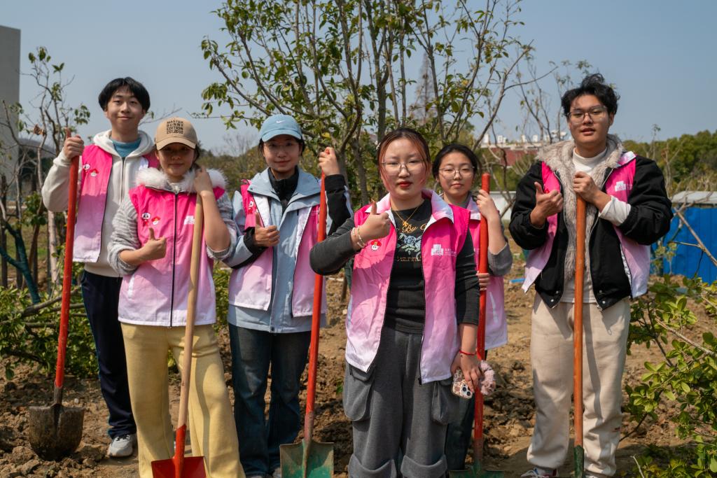 一株树苗,一份希望;一片绿意,一种担当。活动正式开始前,曹沛号召大家在集体劳动中激发热情、增进协作。活动现场,师生们热情高涨、分工协作,挖坑、扶苗、填土、浇水,每一个步骤都认真细致、有条不紊。环境中心的老师全程悉心指导,从挥锹挖坑到提桶浇水,每一个环节都仔细查看、耐心讲解、亲身示范。指尖沾染泥土,心中盛满期待,大家亲手栽种下一棵棵树苗,细心填埋土壤,浇灌生命之水,动作间满是对绿色的向往、对自然的敬畏。而额头渗出的汗珠,折射着春日的暖阳,也映照出食品人守护生态的赤诚之心。