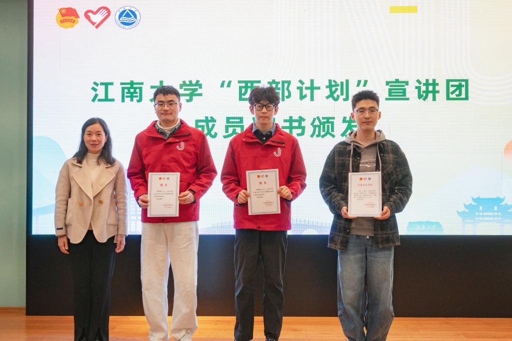 西部计划宣讲团成员聘书颁发仪式,进一步壮大宣讲队伍力量。活动最后设置问答交流环节,同学们围绕西部计划报名条件、服务内容及发展路径等踊跃提问,现场气氛热烈。