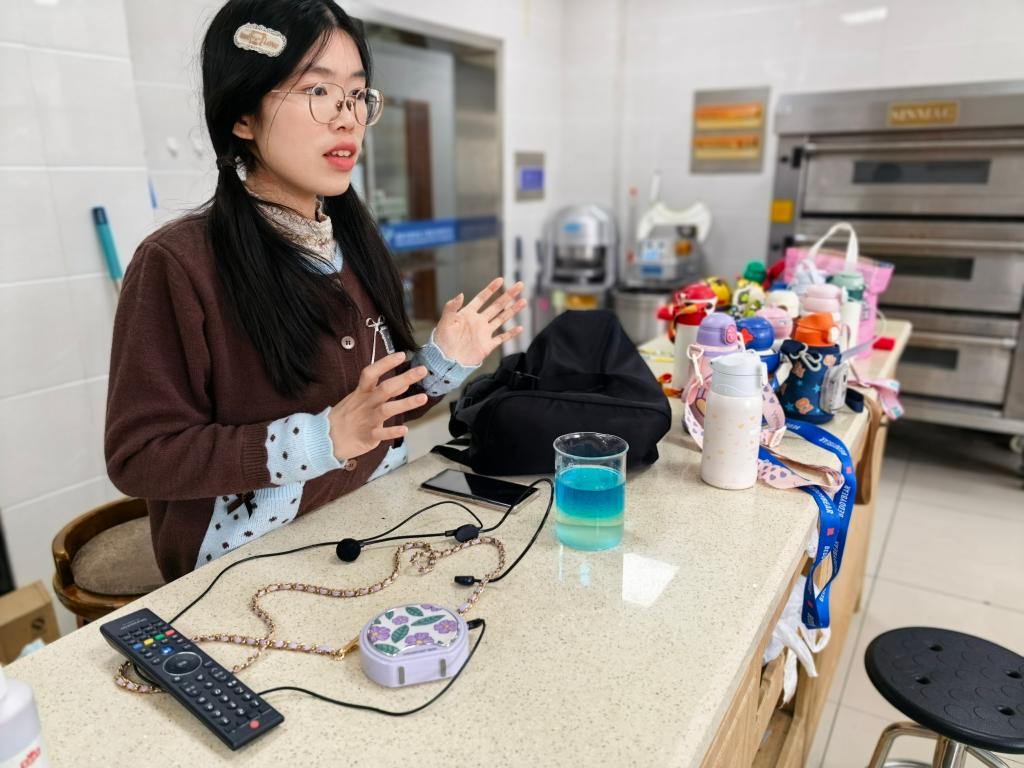 趣味科普环节,主讲老师围绕糖葫芦的“甜蜜科学”层层展开——从固体、液体、气体三态变化入手,讲解糖加热熔化、冷却凝固的基本原理,揭秘糖葫芦脆甜糖衣的“玻璃态”形成奥秘,还带领孩子们对比认识花式糖葫芦与糖雪球,讲解熬糖温度、冷却方式对口感与形态的影响,结合品尝体验科普“糖酸比”知识,让孩子们理解酸甜平衡的美味秘诀。同时通过护牙科普视频与“糖水星空杯”小实验,生动讲解糖分损害牙齿的原理,以及物质溶解度、密度分层相关知识,让食品科学知识直观易懂、趣味十足。