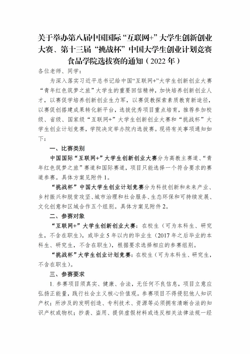 关于举办第八届中国国际“互联网+”大学生创新创业大赛、第十三届“挑战杯”中国大学生创业计划竞赛色情网站 选拔赛的通知(2022 年)